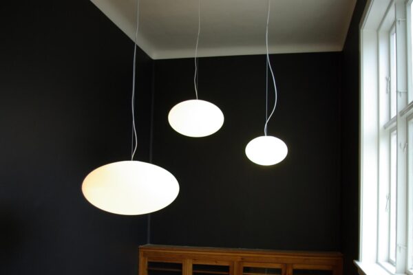 A LED light puts 90 percent of the energy into light and only 10 percent into heat. A conventional light bulb does exactly the opposite. A Led bulb consumes less power to produce the same light output. This is a considerable reduction in use of electricity and this is good for the environment. And LED bulbs have a longer service life than other light sources. So it’s cheaper and better for the environment to use Led light sources instead of conventional light bulbs. The light source of the Eggy Pop Pendant Small is a 6 Watt LED light source corresponding to the light output of a 40 Watt conventional light bulb. The Eggy Pop Pendant Medium and Large have a 12W LED corresponding with the light sourse of an 75W bulb. The color of the light is 2700 K, what we experience as warm light. The LED Light source is included with the lamp.