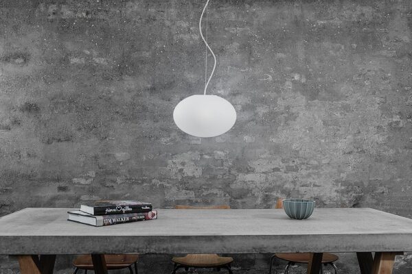 The Eggy Pop Pendant lamp is designed by Guglielmo Berchicci, the biological and inviting design is based on the simple and universal form of the egg. The Eggy Pop Pendant is Opal white and made of PE polyethylene, a strong, UV resistant and recyclable material and gives a soft and pleasant light without glare. You can use the Eggy Pop single or in a mixture of different formats for a beautiful decorative effect. The Eggy Pop Small has is 32 cm and 22 cm high, the Eggy Pop Medium is 55 cm and is 35 cm high, the Eggy Pop Large is 70 cm and is 40 cm high. There is choice for a version with a cord of 2 metres for ordinary ceiling height, 4 metres for high ceilings or 6 metres for very high ceilings. In the Eggy Pop series are also a floor lamp and a outdoor lamp available.