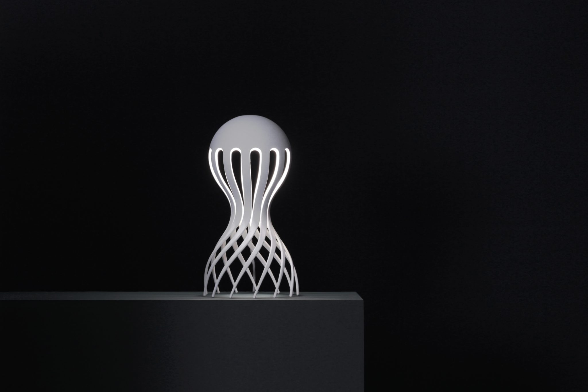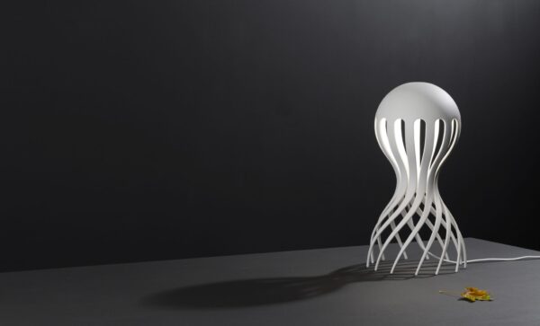 The Cirrata Lamp is designed by Markus Johansson for Oblure. The Cirrata is an octopus who lives in the deep ocean has Markus inspired to design this particularly elegant appearance. He has tried many materials for the production of the lamp and eventually it became die-cast aluminum. This is the perfect form and creates a sustainable product. The Cirrata lamp is available in two colors, white or grey. The Cirrata Lamp is 44 cm high and has a diameter of 22 cm. This mood lamp is an object for a table, cabinet or sideboard, and by its format also good as decorative floor lamp.