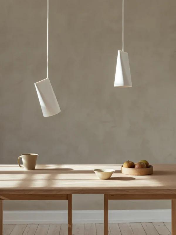 De Moebe Ceramic hanglamp small is ontworpen door het design team van Moebe. Het is een hanglamp van keramiek en dat geeft een mooi warm licht. Met deze eenvoudige hanglamp kun je direct of schuin verlichten. De kap, hoewel rond aan de basis, is rechthoekig aan de bovenkant en hangt vrij op het snoer. Hierdoor kan je de kap naar links en rechts bewegen en volledig ronddraaien, waardoor de uitdrukking verandert terwijl u dit doet. De Moebe Ceramic hanglamp kan je als een enkele lamp naast je bed of bank worden gebruikt of in combinatie boven een eettafel of een hele kamer. De kap is met de hand gemaakt en daarom kan elke lamp iets verschillen in vorm, maat en kleur, waardoor elke lamp uniek is. De kap is ongeglazuurd, onbewerkt gelaten en gebakken bij meer dan 1100°C, waardoor een uiteindelijk oppervlak ontstaat dat mat en fijn van structuur is