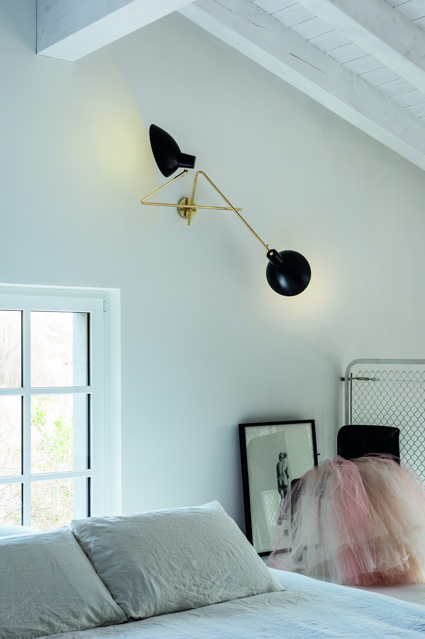 De Cinquanta Twin Wandlamp is ontworpen door de Italiaanse architect Vittoriano Vigano in 1951. De Cinquanta Twin Wandlamp heeft twee lichte beweegbare kappen van aluminium die kunnen draaien en kantelen, dus van direct licht gedraaid kan worden naar indirect licht. De Wandlamp heeft een sierlijk en slank koperen frame en de kap is verkrijgbaar in twee kleuren, wit of zwart . Deze wonderschone designklassieker is 113 cm breed en 53 cm hoog. Bij Smukdesign wordt de lamp inclusief de LED lichtbronnen geleverd.