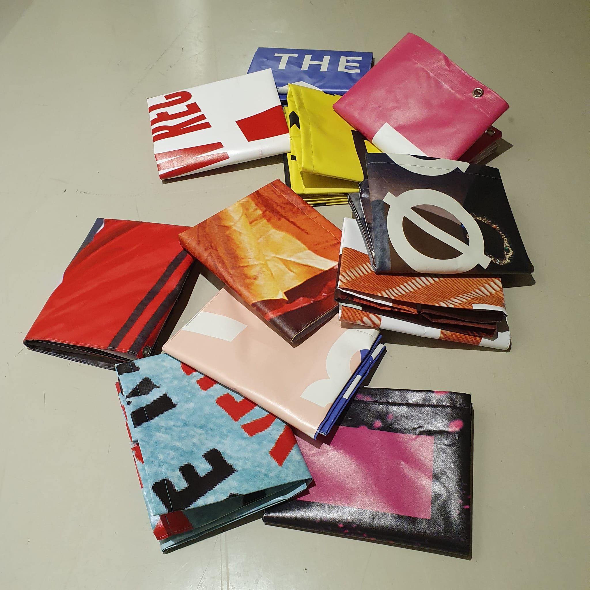 Heleen van Zantvoort heeft zich gestort op het hergebruik van materialen. Met veel plezier geeft ze in haar atelier in Rotterdam oude afgedankte spullen een tweede leven. Hier maakt ze onder andere tassen en Bisonbags van geveldoek U kent ze wel, die grote affiches die buiten aan muren van theaters, musea en winkels hangen om iets aan te kondigen. Als deze banners hun dienst hebben bewezen is het doek (bisonyl) prima geschikt om opnieuw te gebruiken. Het is een sterk materiaal, mooi van kleur en weerbestendig. Elk product is uniek met een originele print, want geen enkel geveldoek is hetzelfde.